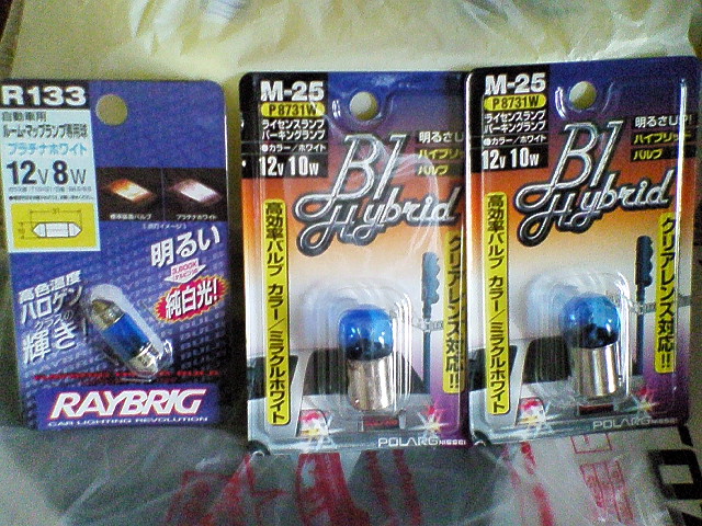 なかなか良いんでないの?(^^) ホントは前後ウィンカーランプ等のバルブも交換したかったものの、電球に色が必要かとか全く調べずに行ったので無難なもののみを購入したのは秘密(笑) ・購入したバルブ ・ルームランプ(左:交換前 右:交換後) ・クリアランスランプ(左:交換前 右:交換後) とりあえず、装着後に他のバルブの状態を確認してみると、やはりしばらく交換された形跡が無いから、近日中にブレーキランプ等のバルブも交換しなきゃ・・・ それにしてもBF/BCの取扱説明書はランプの交換の仕方とかクーラントの補充の仕方とか書いてあるのでいいね。 ていうか、BPに乗ってた時はほとんど取説見なかったから知らんけど。(爆